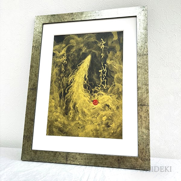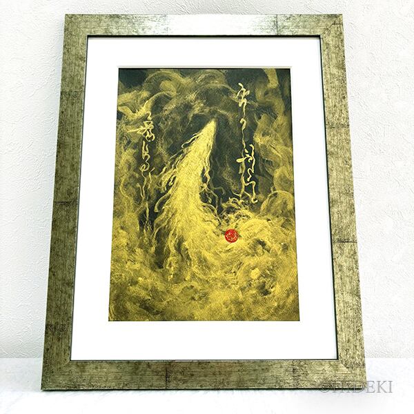 清龍が「龍神護符」を揮毫する際、自らのエネルギーを極限まで純化し、龍神様の波長と調和させた刹那に生み出されるのが、この「エネルギーアート」です。護符の霊験をアートとして昇華させたこの作品が、持ち主様の守護となり、道を切り拓く一助となるよう祈りを込めて描きました。