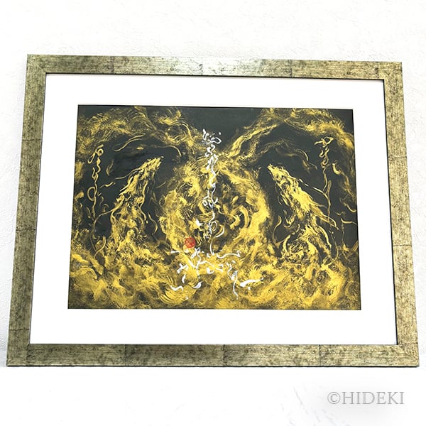 【龍神画】金の昇龍「共鳴」 一点物 原画 - 調和・結実・家運隆盛 | 額装済 アクリル墨絵