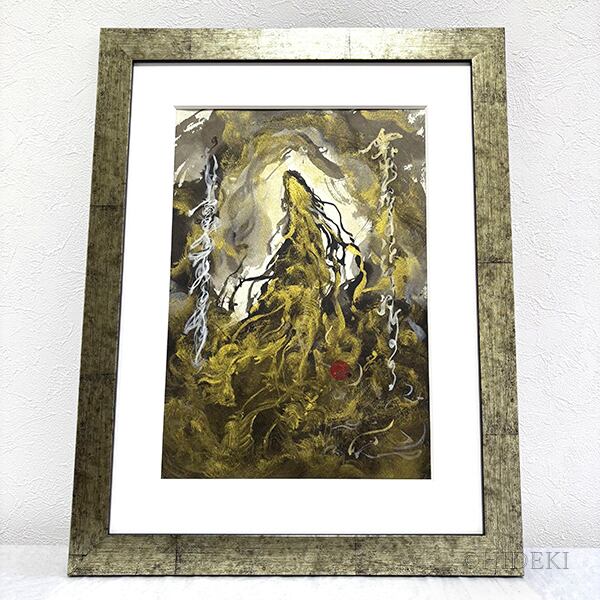 最高級のアクリル絵具の輝きと、伝統的な墨の深い質感を重ね合わせ、龍神の躍動感と神聖なエネルギーを表現しました。視線を引きつける黄金の色彩は、見る者に「希望」と「上昇」のエネルギーを与えます。