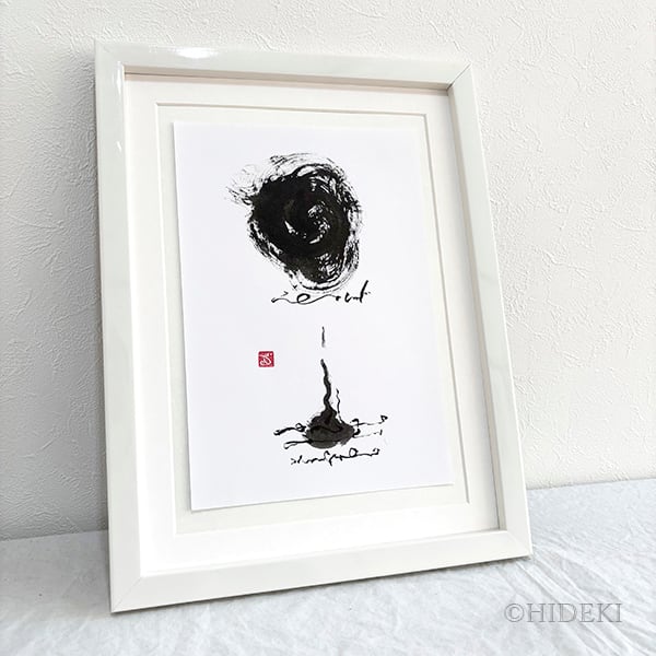画面上部に配された重厚な墨の円は、溢れんばかりの慈愛と豊かさを。そこから滴り落ちるような線は、惜しみなく他者へと注がれるエネルギーを表現しています。組織を率いるリーダーや、社会に価値を還元し続けたいと願う方の、気高い志に寄り添う一枚です。
